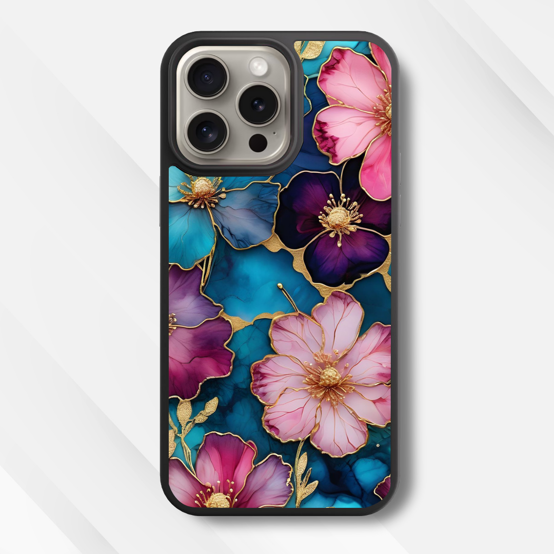 Teal & Pink Flower Glass Case